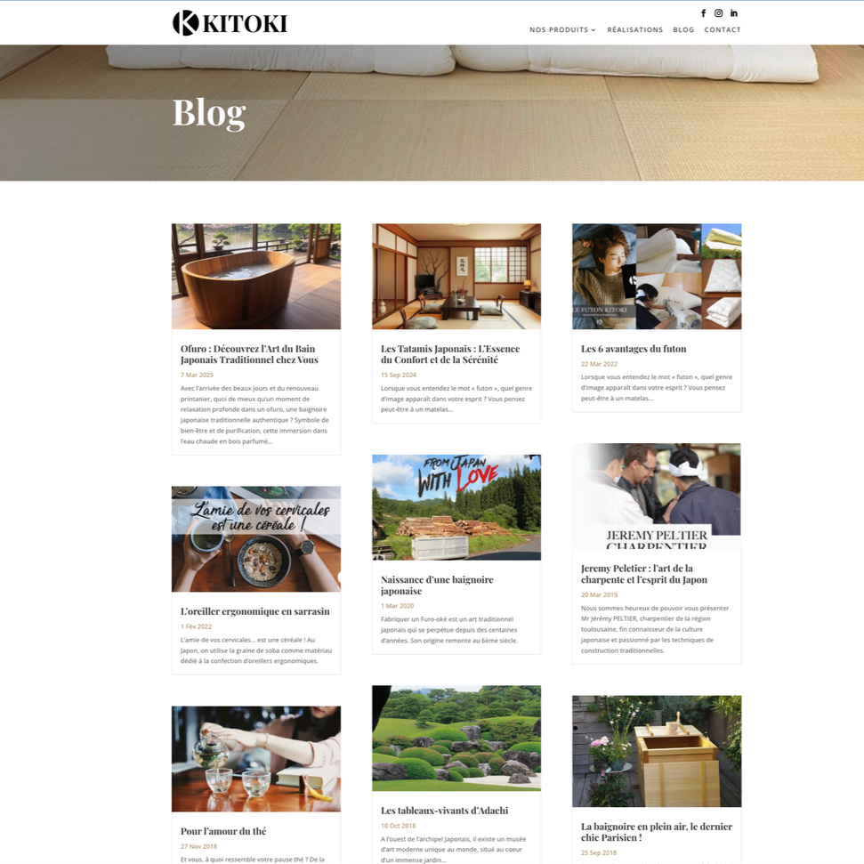 Kitoki-Déco, spécialisé dans la décoration japonaise, avec une identité visuelle modernisée et une navigation optimisée.